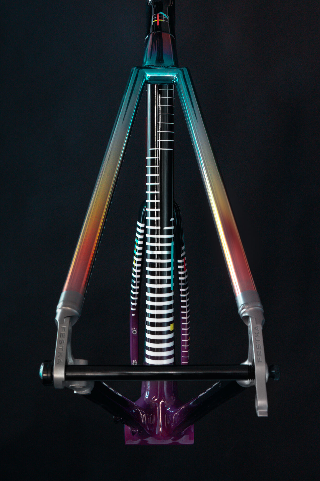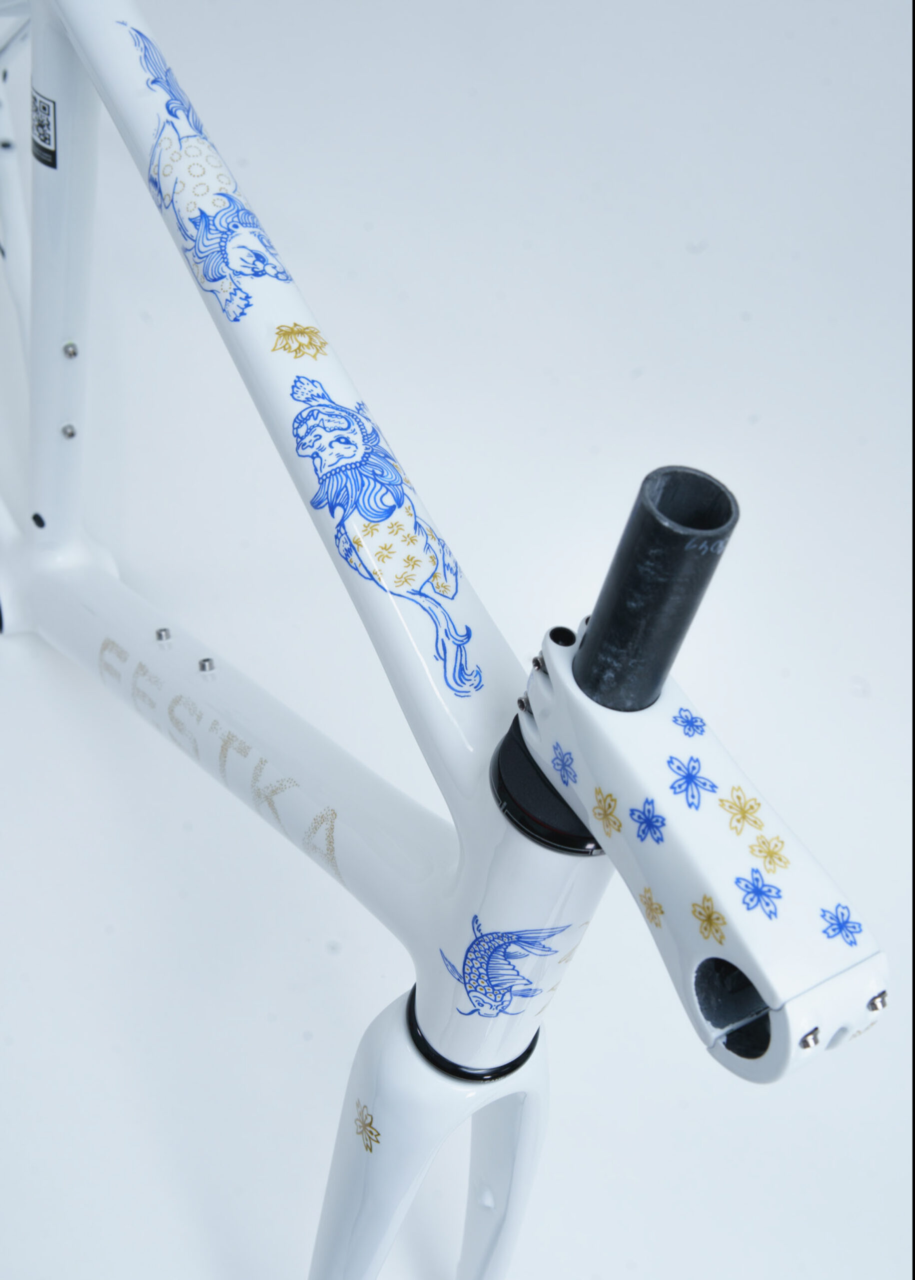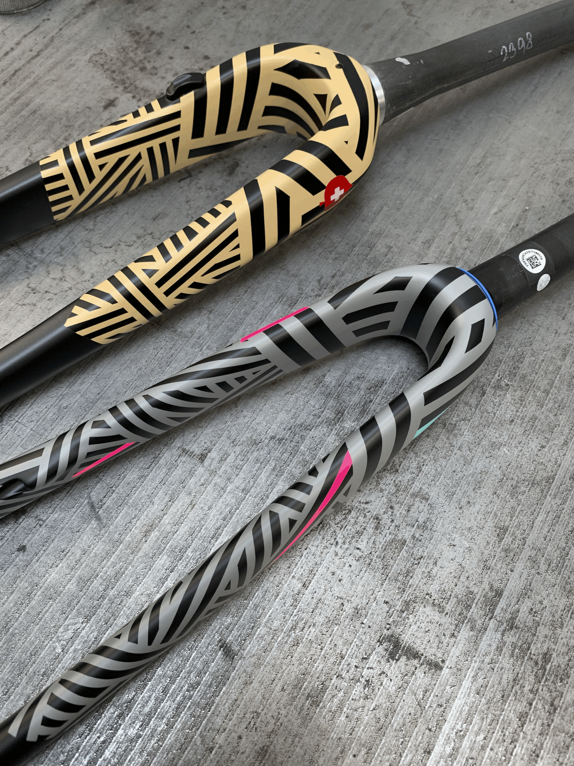 Custom design means something different to everyone. For some, it’s simply a change of color; for others, it’s a full, themed concept. Pricing depends on design complexity, branding, paint and varnish types, and the number of components. Our prices start at €950 for a clean two-color design on a frameset.